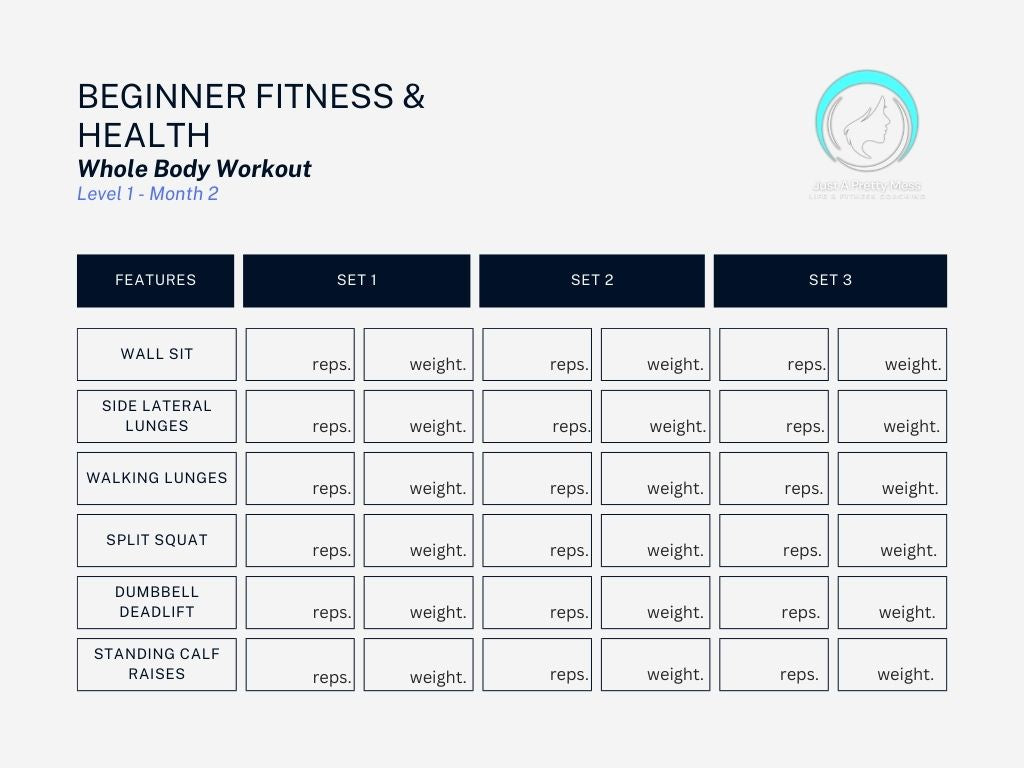 Perform each exercise with 10-12 reps with 30 seconds rest between sets.